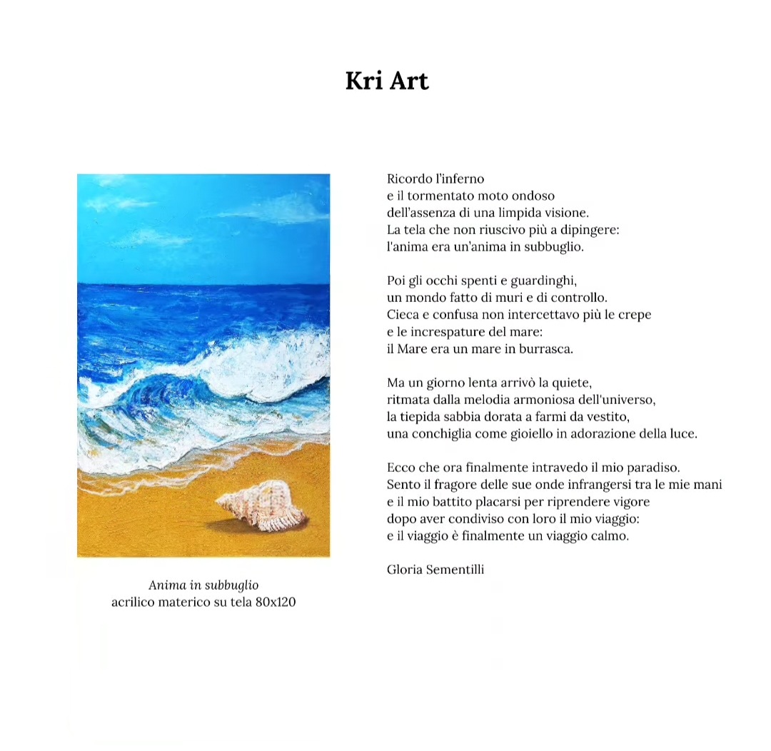 Grazie alla preziosa organizzazione di Alessandra Altieri, ho potuto vivere l’energia dell’evento anche a distanza. Con la sua diretta Facebook mi ha fatto sentire lì, tra le pareti della galleria, insieme agli altri artisti e ai visitatori che osservavano le opere. Certo, sarebbe stato ancora più bello poter stringere mani e vedere di persona le reazioni del pubblico, ma anche così è stata un’esperienza che mi ha riempita di gratitudine.