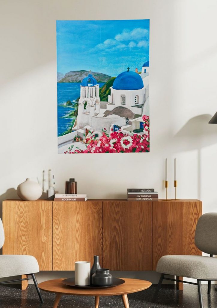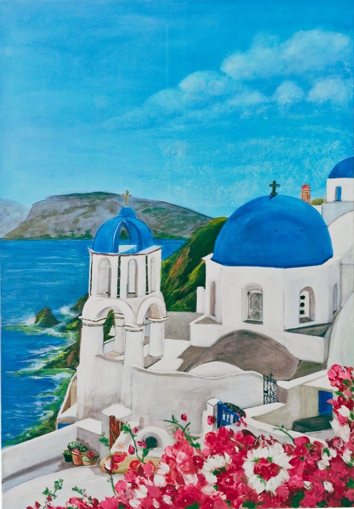 I suoi panorami, con le case bianche e l’ azzurro dei tetti che si mescola al blu del cielo e del mare, creando sfumature meravigliose, mi ha sempre affascinata.